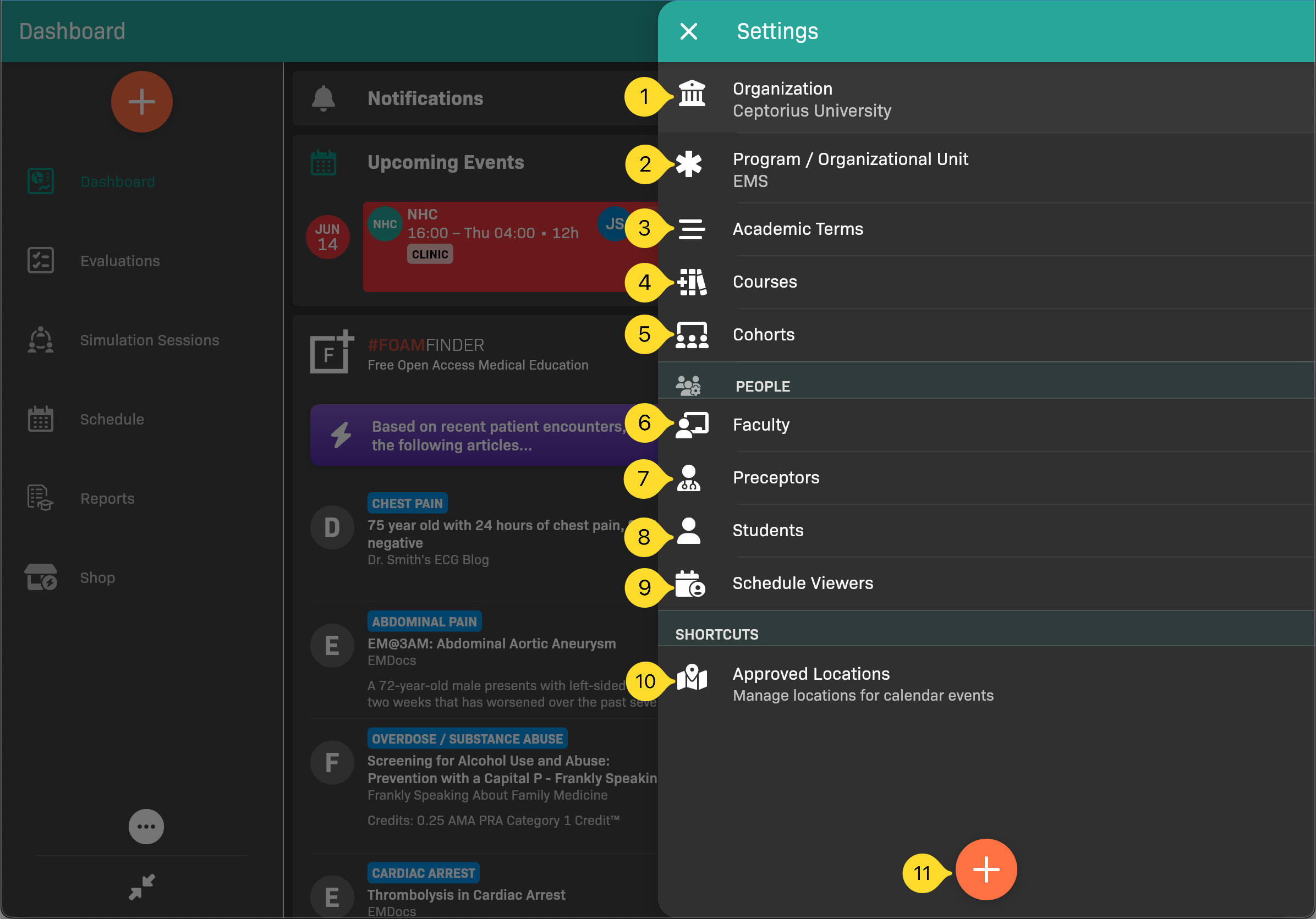 | 7 | Preceptors | Tap to view, manage, and add preceptors. See Managing Preceptors. |
