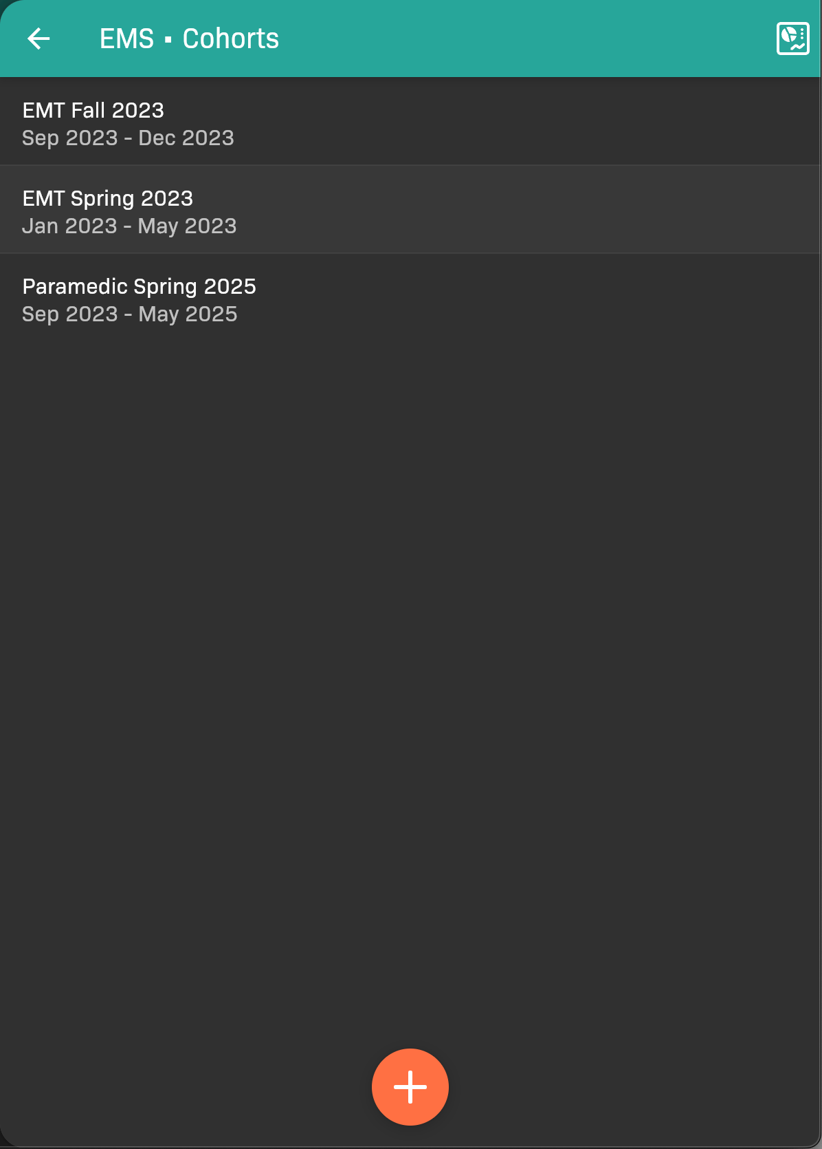 Section titled “Add a cohort”Tap at the bottom of the screen. See Add Your First Cohort for details.