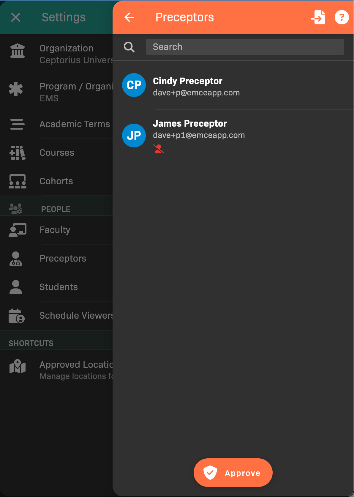 Alternatively, you can view a preceptor’s details and tap the Approved toggle.