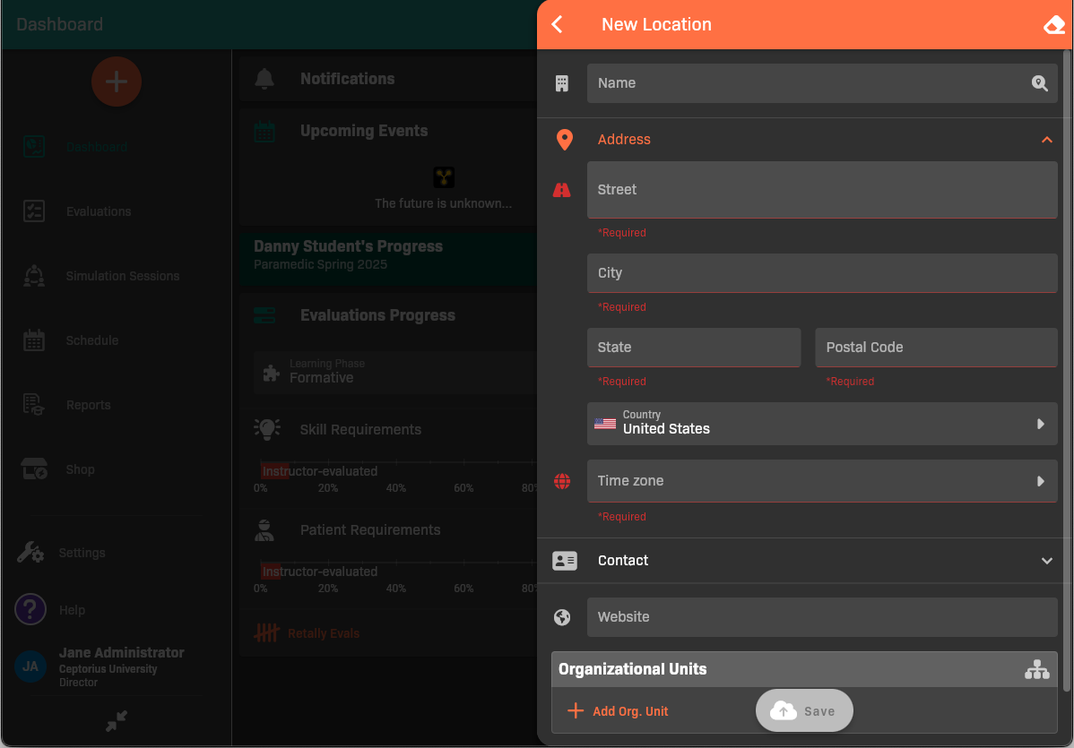 - (Optional) If the location has multiple sites/campuses, add an Organizational Unit for each.