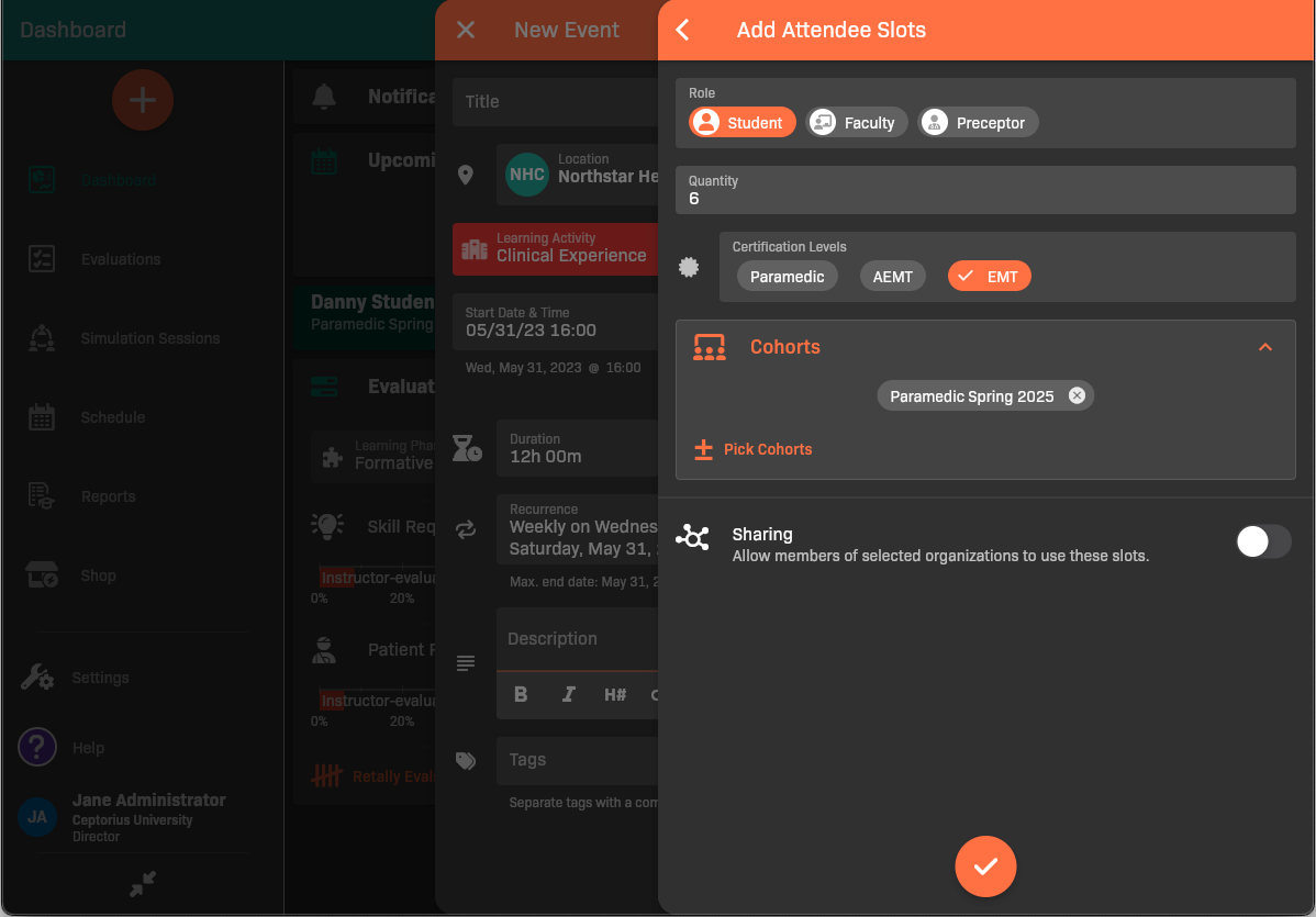 - (Optional) Enable Sharing to allow students from other organizations to take these slots, then select one or more organizations.