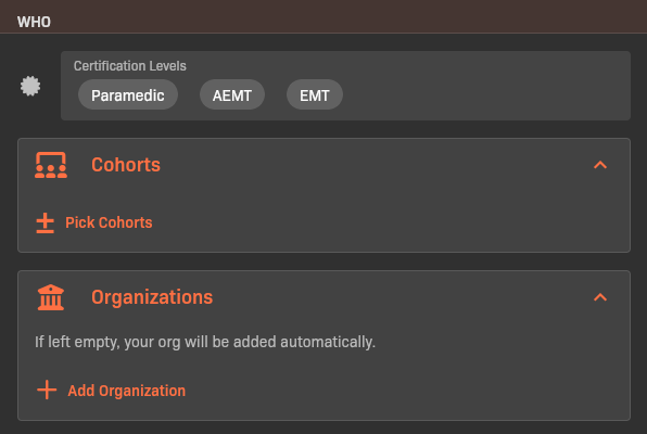 Section titled “Add student slots”Add slots for students to sign up for the event. All criteria are optional; if you do not select Certification Levels or Cohorts, all students will be eligible.