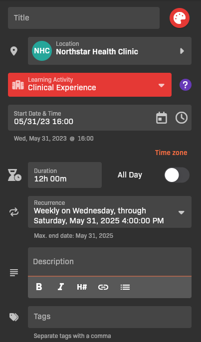 - (Optional) Add tags to aid in filtering on Schedule view.