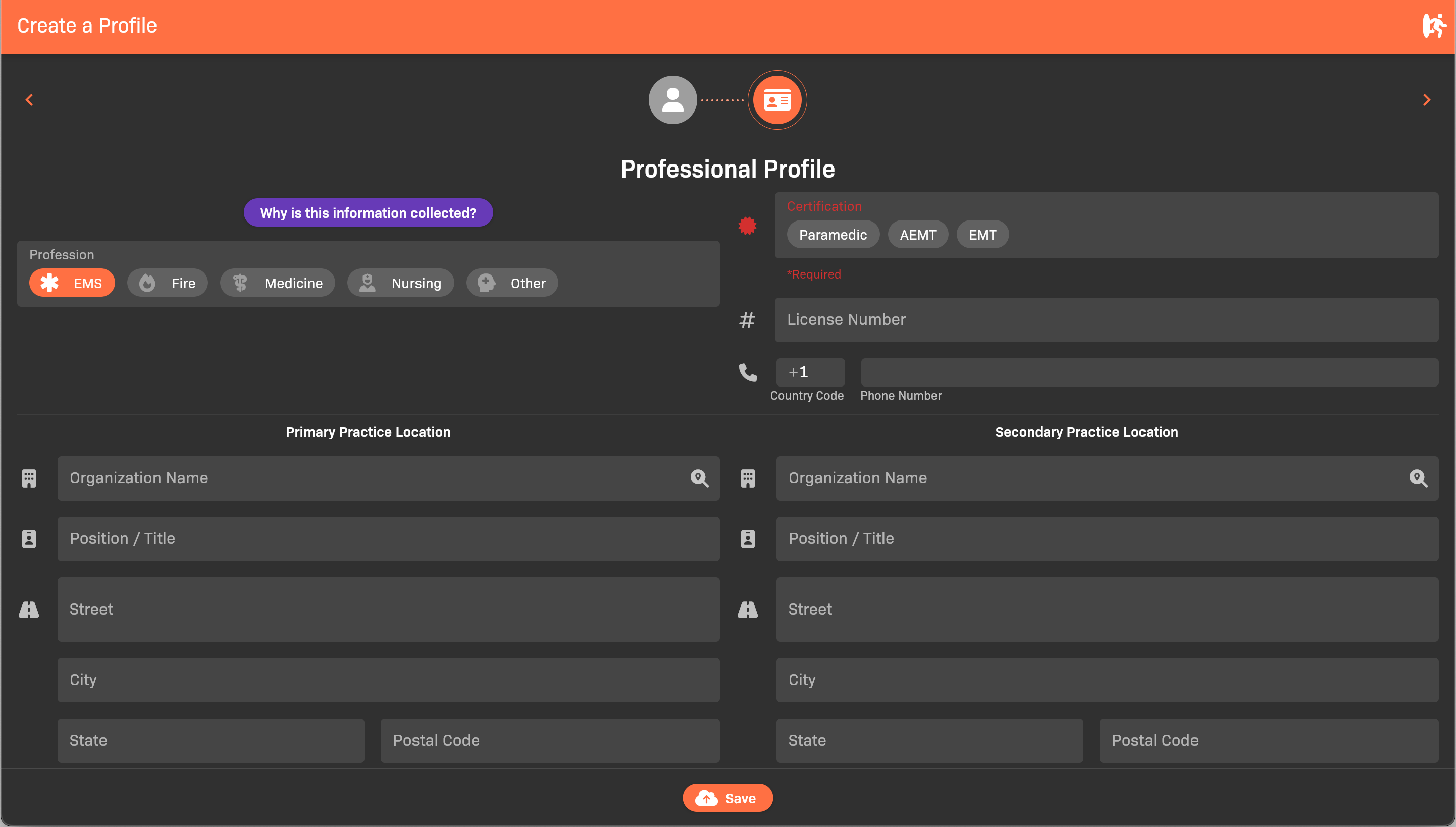Section titled “Step 3: Set up your profile”In order to promote the integrity of the data entered by students, we ask all preceptors to provide information about their professional certification and current employers. (All information is optional except for Profession and Certification / Credential.) This will help instructors and program directors validate a preceptor’s identity and contact them as needed.