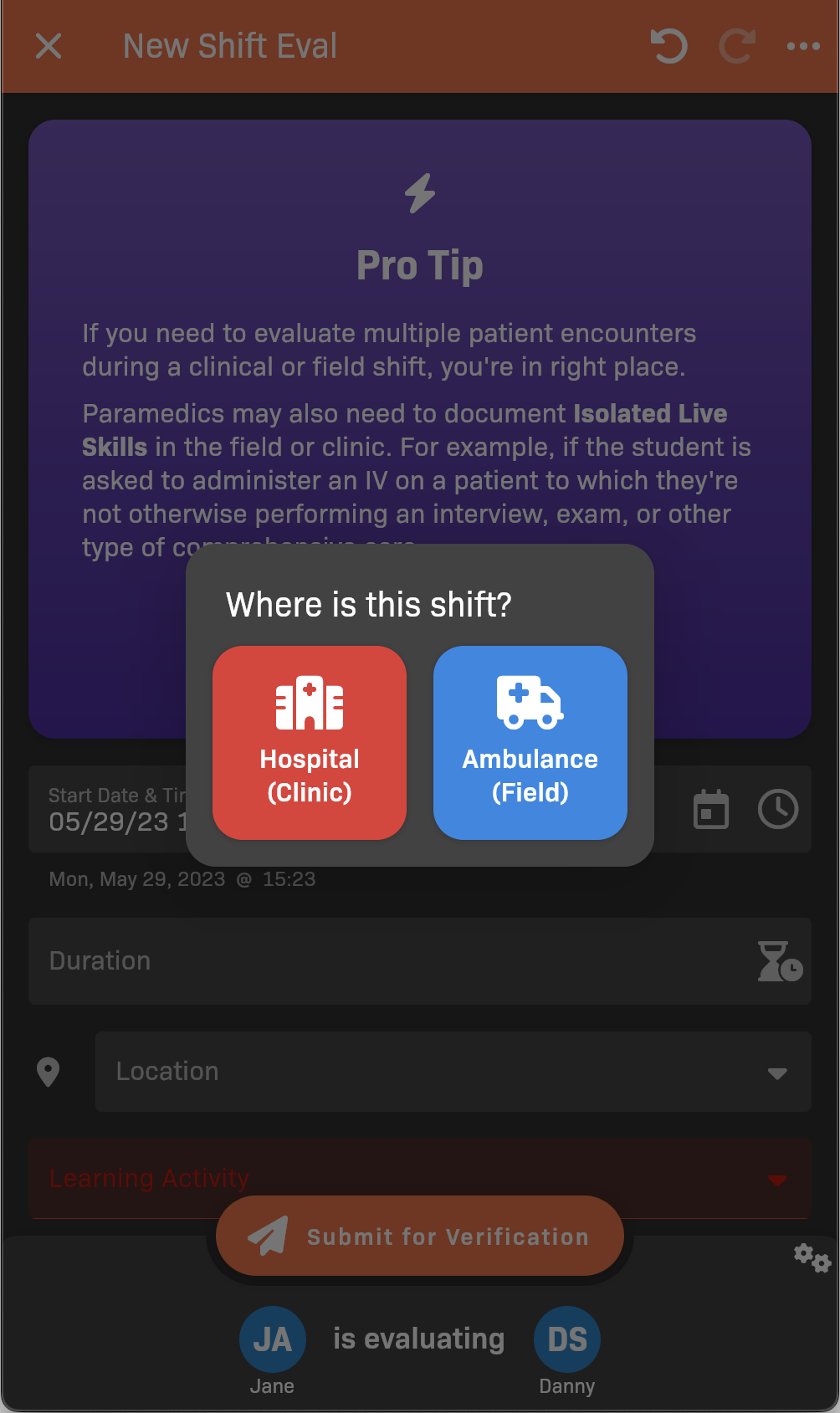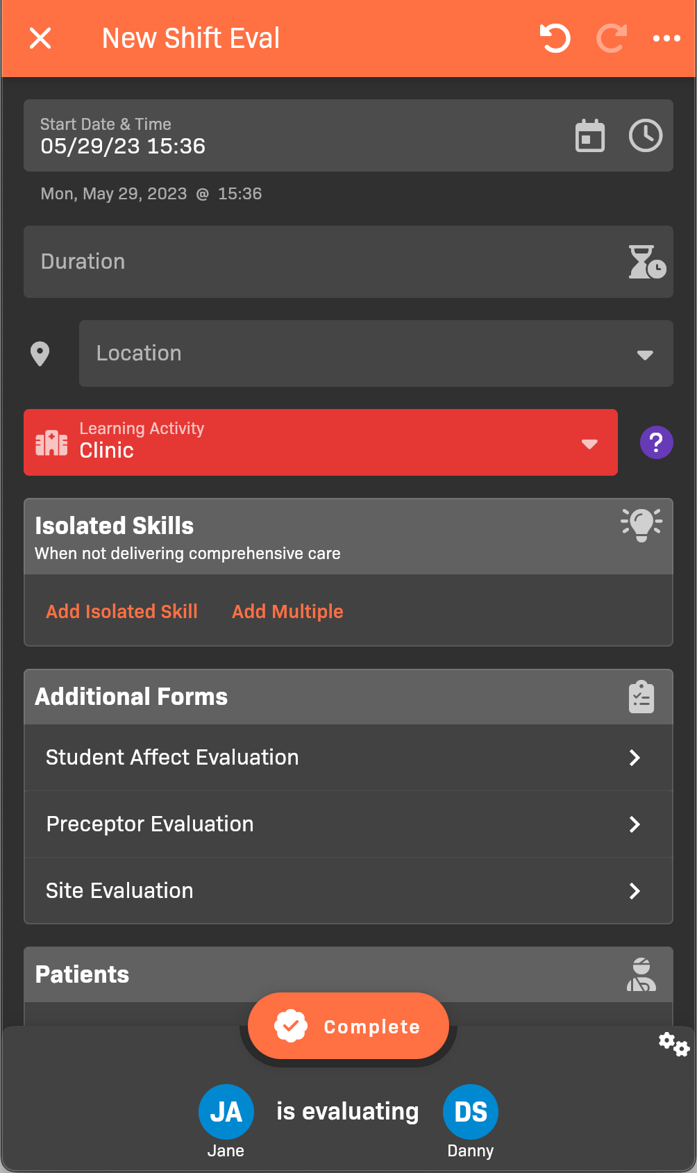 Section titled “Step 2: Fill out the evaluation details”Complete the form to record the student’s performance.