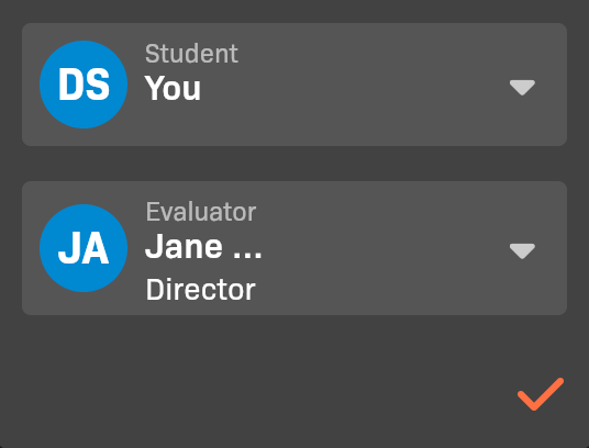- Select the person that is evaluating your skill performance as the Evaluator. This person could be an instructor or another student.