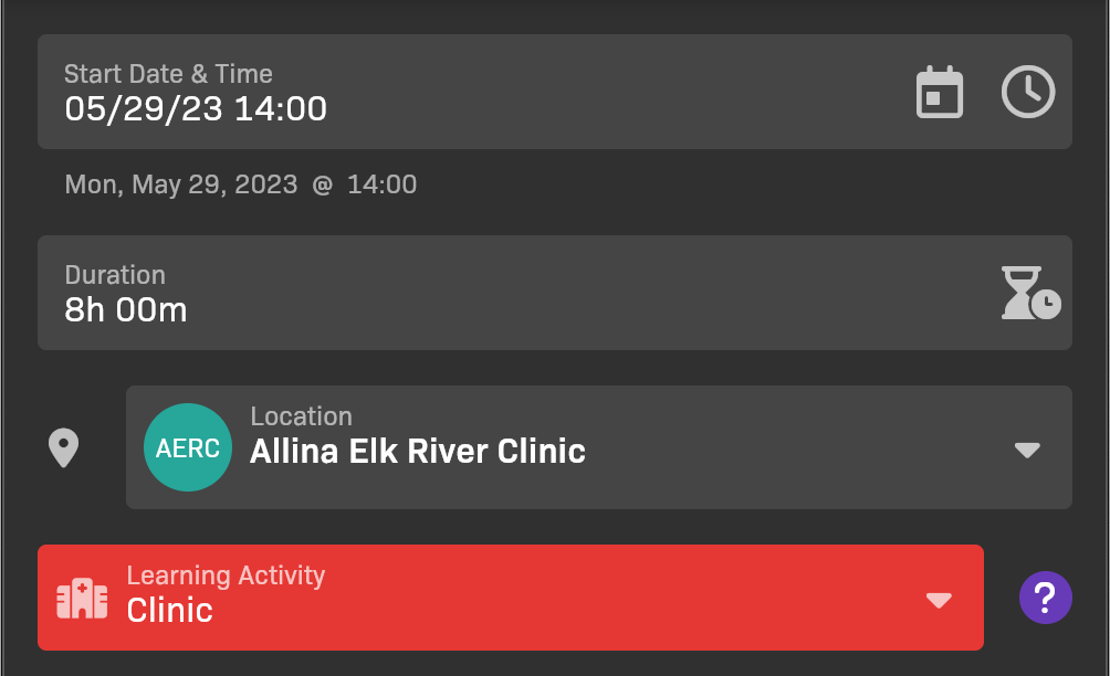 4. Confirm that Learning Activity captures the context for the shift.