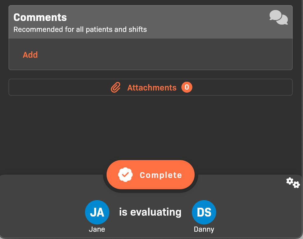 • When you add the patient eval, the evaluator will default to the same person as the shift evaluator. You can optionally select a different evaluator.