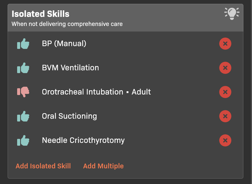 Add any Isolated Skills that the student demonstrated while not delivering comprehensive care.