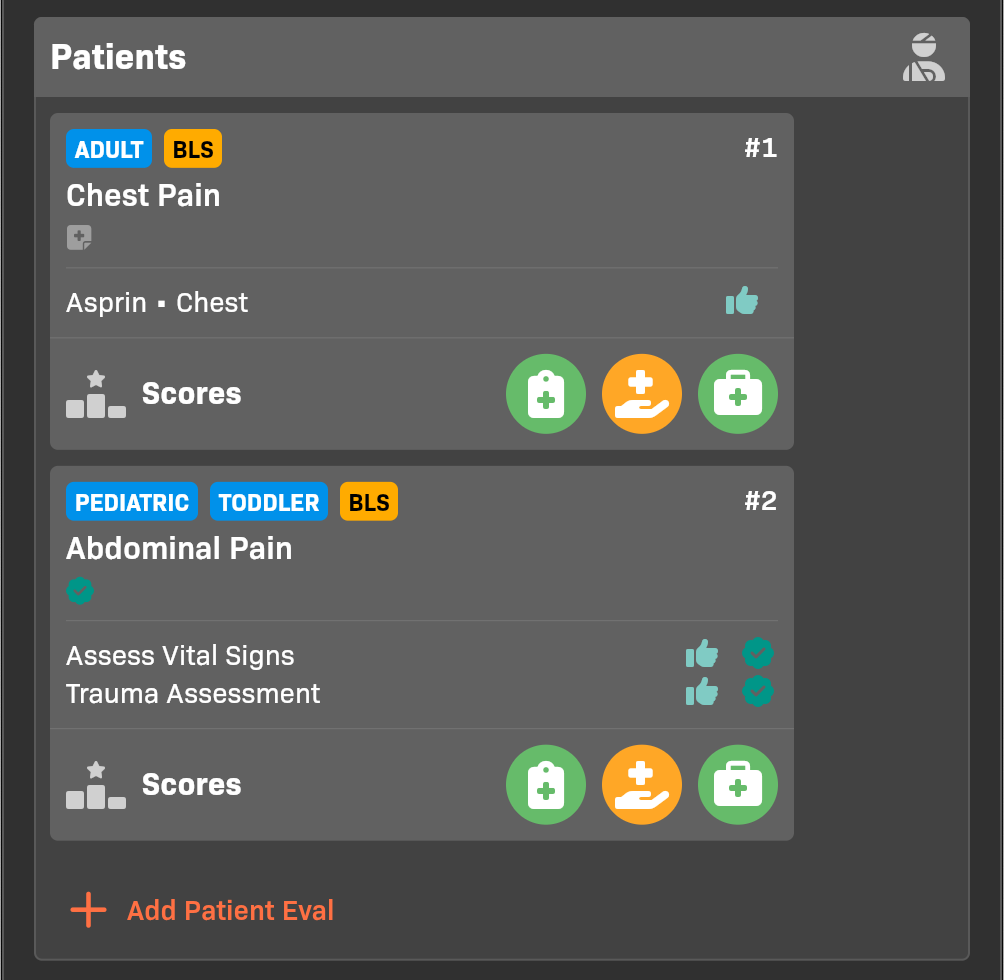 • To add a patient, tap Add Patient Eval.