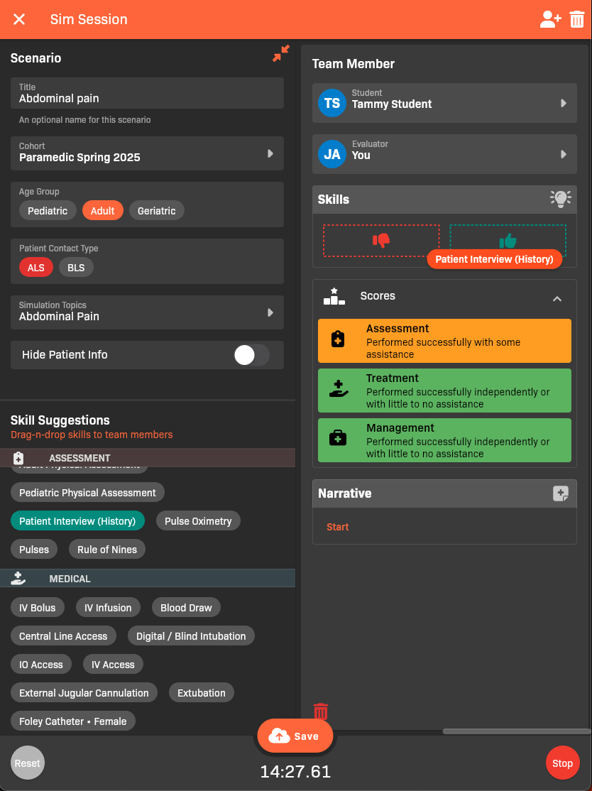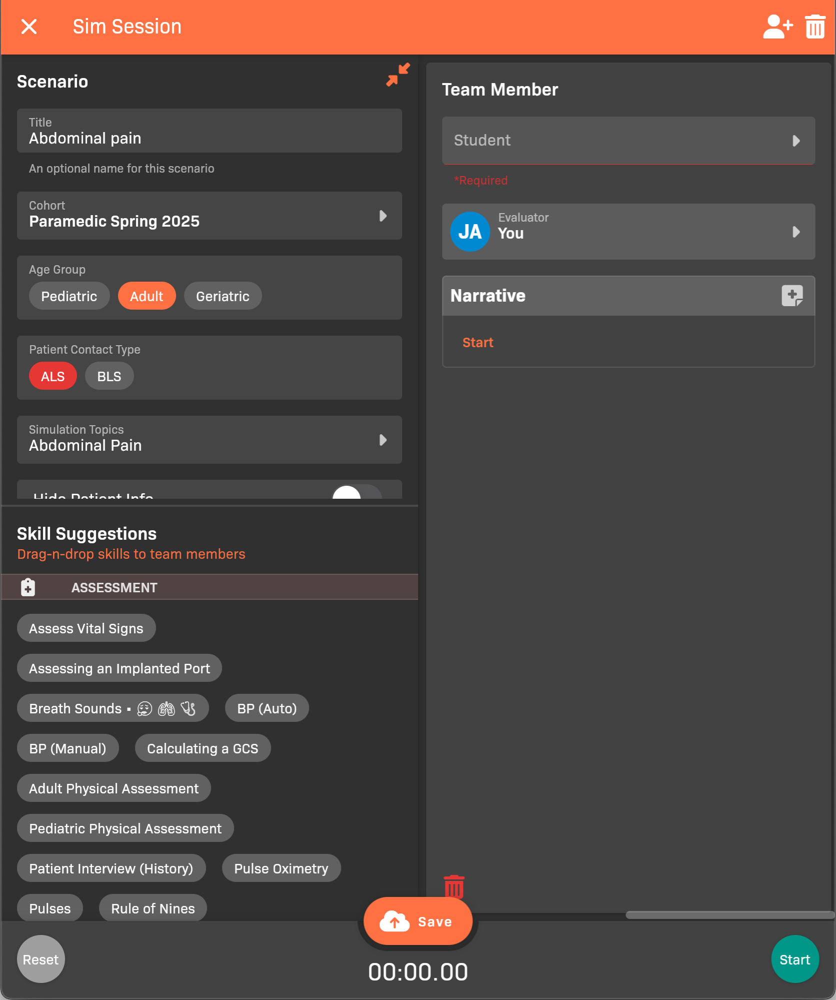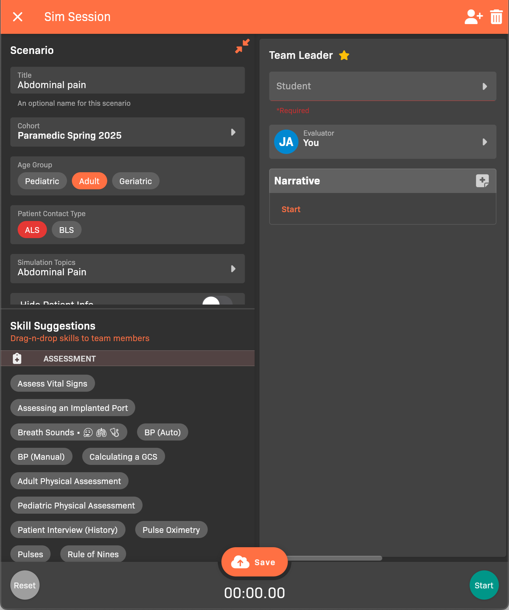 - Select one or more Simulation Topics that capture the patient’s symptoms.