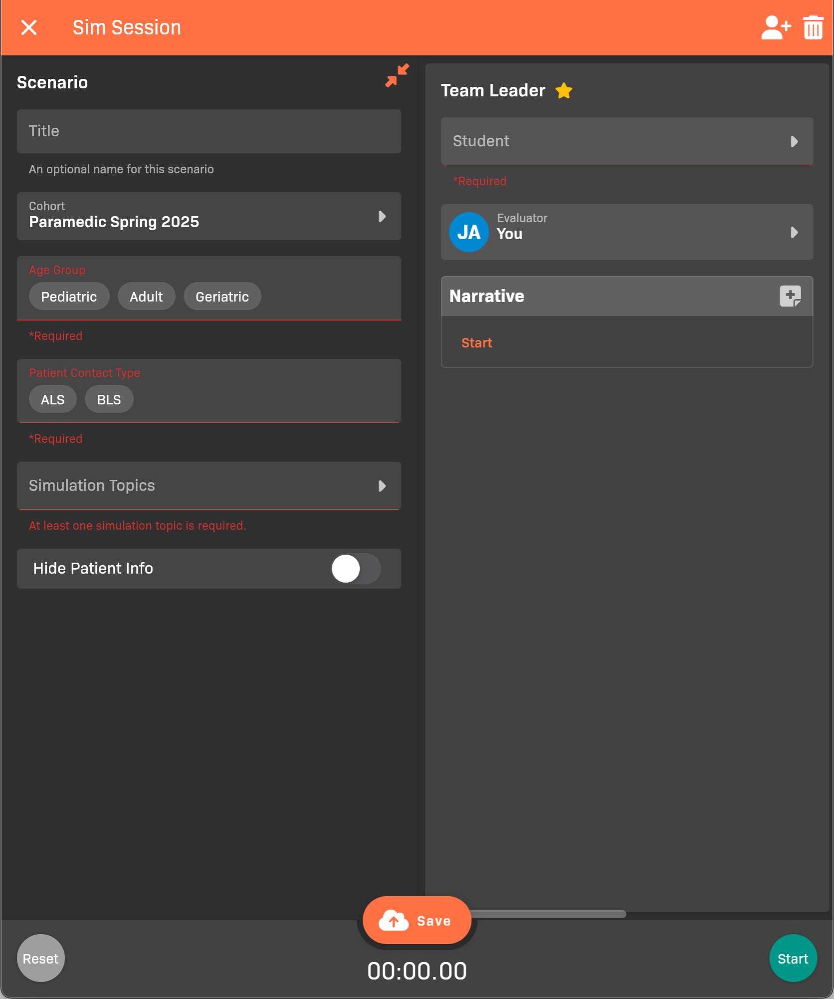 - (Optional) Enable Hide Patient info to prevent participants from seeing patient information that might given them an advantage during the session.