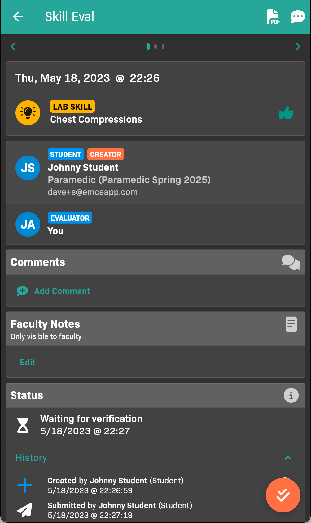 • After you have finished rejecting evaluations, you can bulk approve the remaining evaluations by tapping (approve) at the bottom of the screen.
