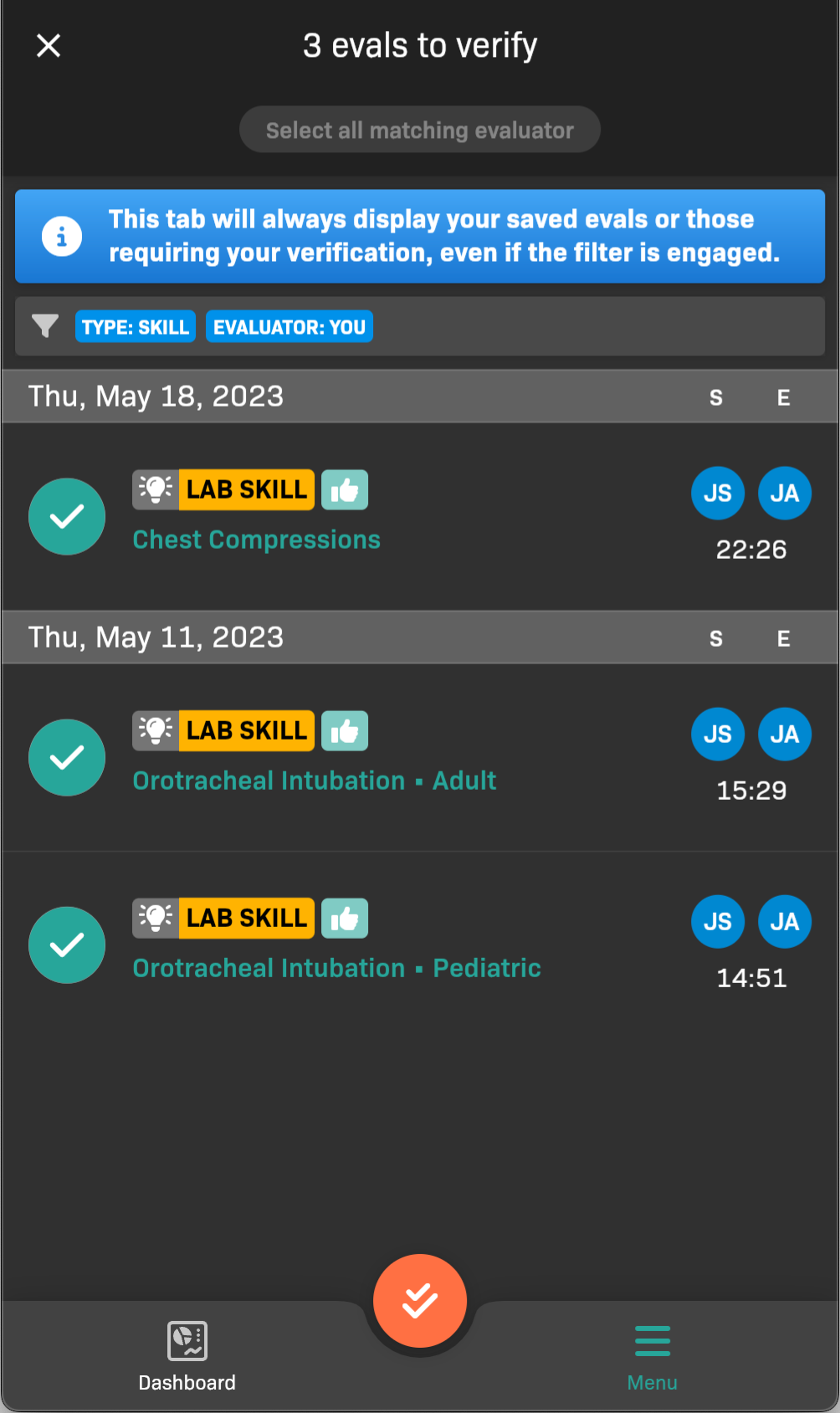 2. Select each of the evaluations that you want to act on by tapping the circle.