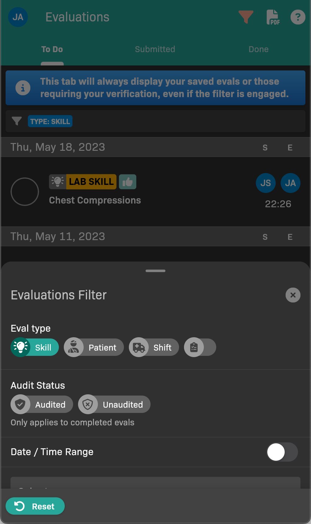 3. (Optional) If you would like to see only the skill evals that need your approval, tap the at the top of the screen to filter the list.