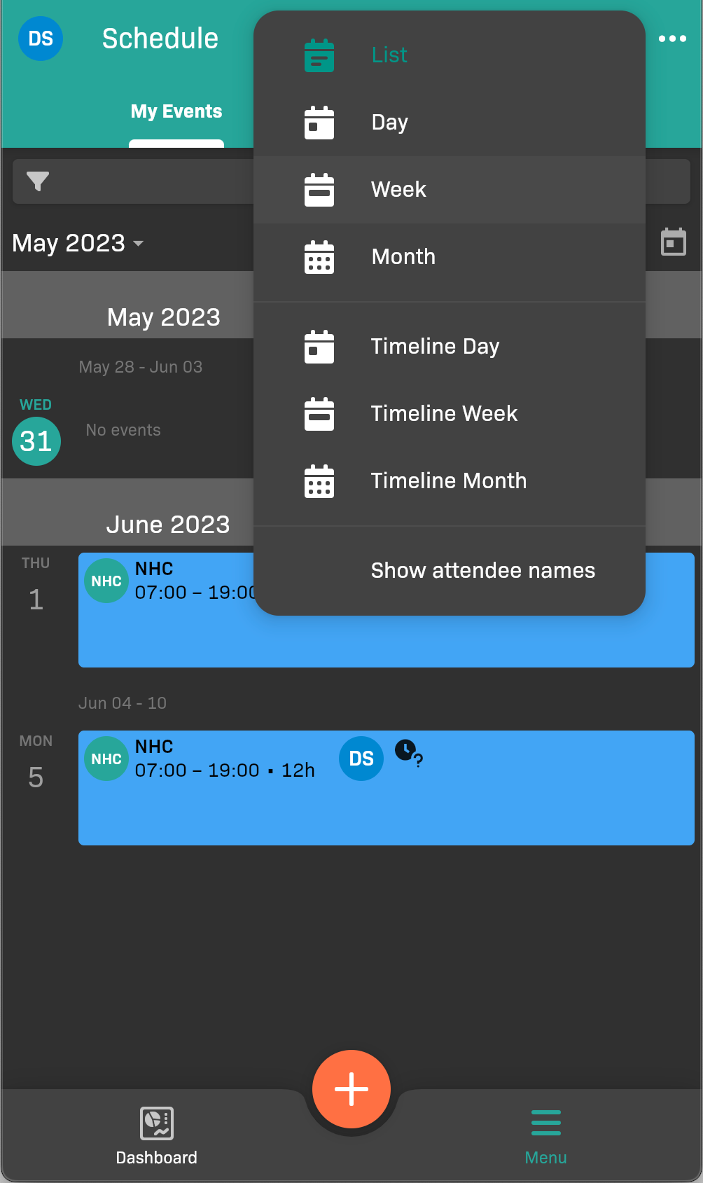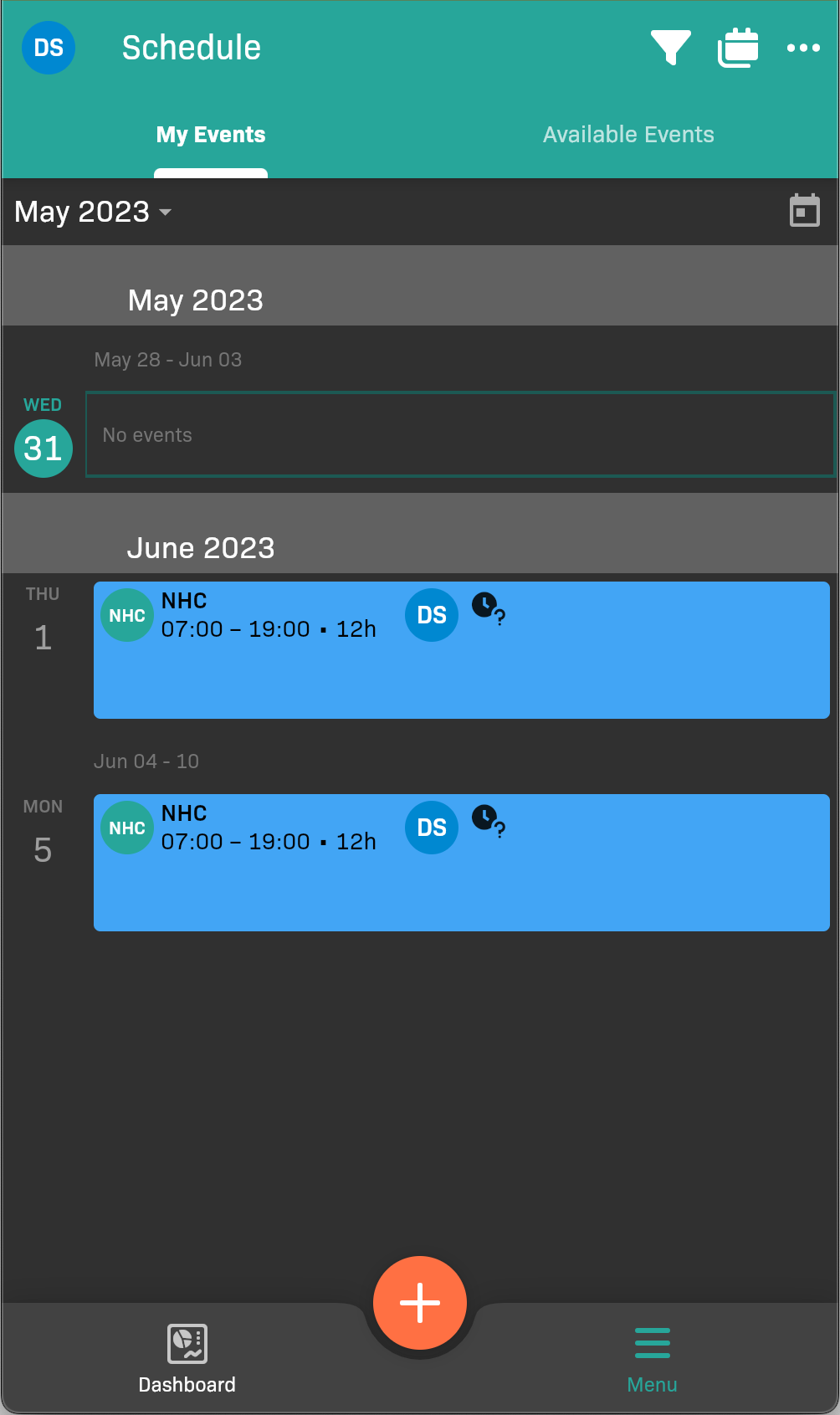 Section titled “View the Schedule page”- Go to the Schedule page. If you’re using a mobile device, you may need to access this page by first tapping (menu).
